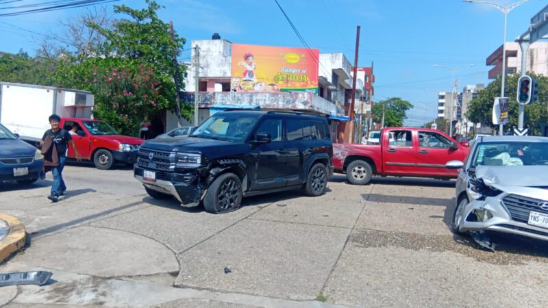Pérdidas materiales cuabtiosas y un masculino con golpes, fue el saldo de accidente que ocurrió po una falla en el semáforo de la avenida Nicolás Bravo e Ignacio Zaragoza, en el que se vio involucrado el exalcalde de Las Choapas, Renato Tronco Gómez.