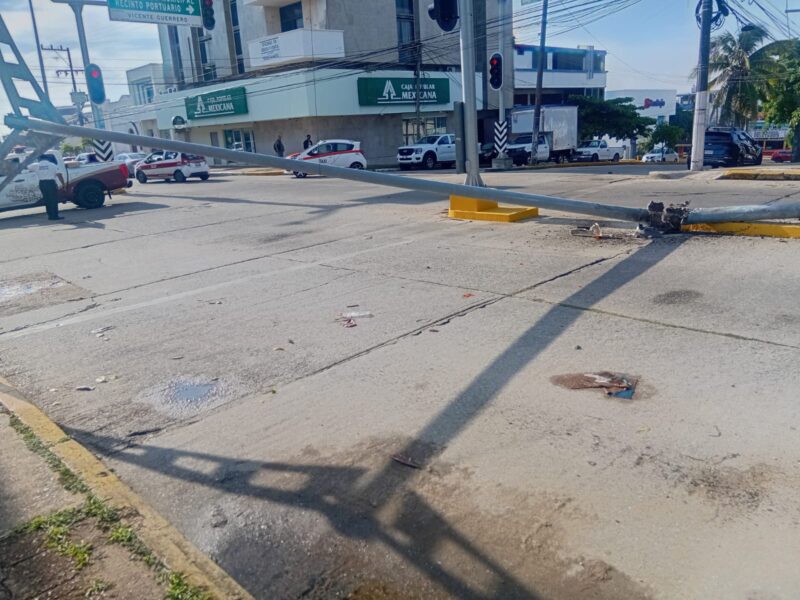 El accidente ocurrió cuando la unidad transitaba de poniente a oriente, sobre la avenida Ignacio Zaragoza, pero al llegar al cruce con Guerrero, su conductor perdió el control y derribó un poste metálico de alumbrado público propiedad del Ayuntamiebto.