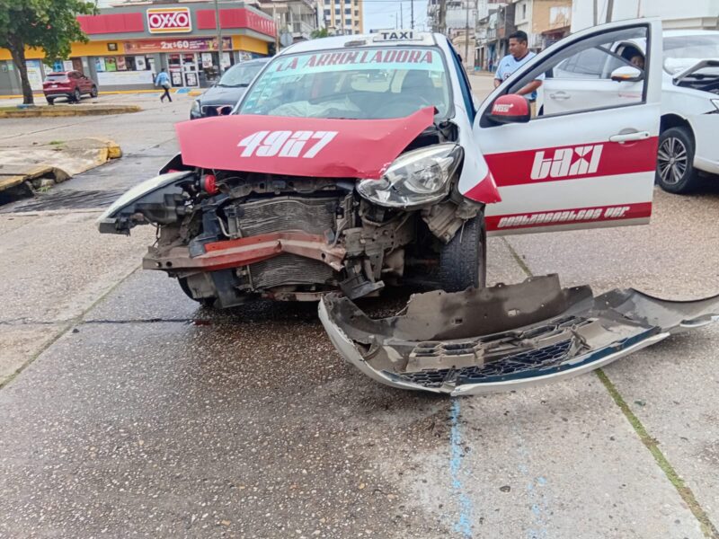 Que se impactó contra un automóvil marca Nissan, tipo March, habilitado como taxi de este puerto, marcado con el número 4927, con placas A-615-XEH del servicio de transporte público local.