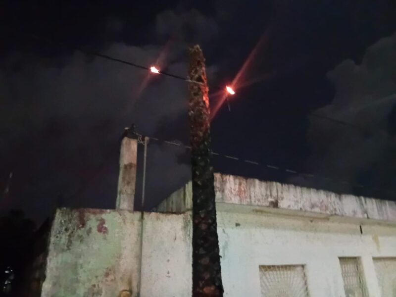 Una indigente a quien los vecinos solo identifican con el sobrenombre de «La Pelona», quien deambula por calles de la colonia, incendió durante la noche del martes una palmera ubicada en las inmediaciones de la empresa avícola Bachoco.
