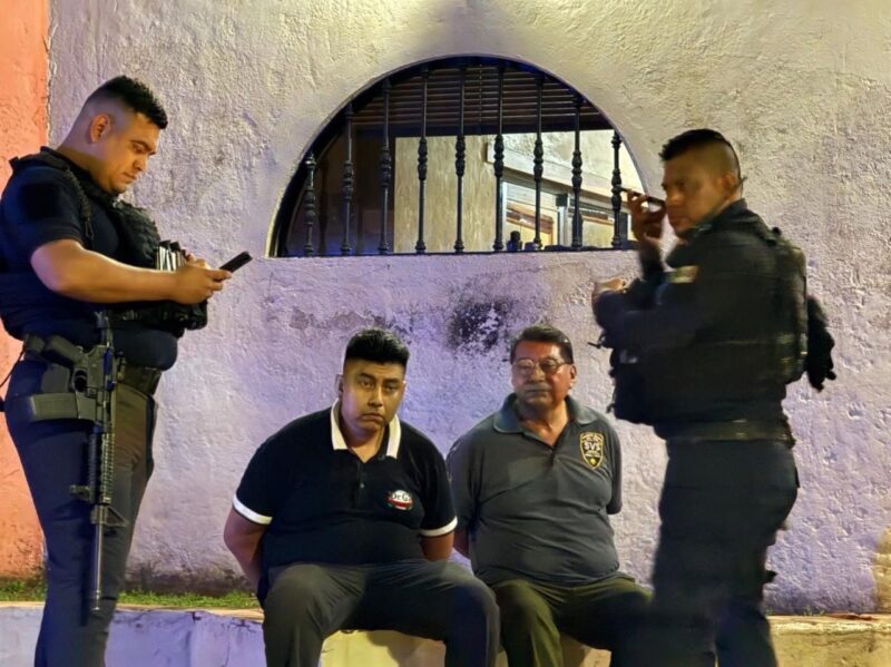Dos hombres, identificados como padre e hijo, fueron detenidos por elementos de la Policía Estatal luego de ser sorprendidos cuando presuntamente intentaban forzar la entrada principal de las notarías número 4 y 6, ubicadas en la esquina de las calles Ocampo y Madero, en el barrio Tamarindo.