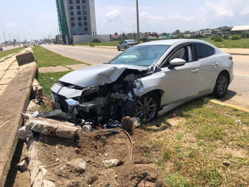 El accidbere ocurrió cuando dicho vehículo transitaba de poniente a oriente sobre Malecón, pero al llegar a las torres, su conductor perdió el control y abandonó la superficie de rodamiento.