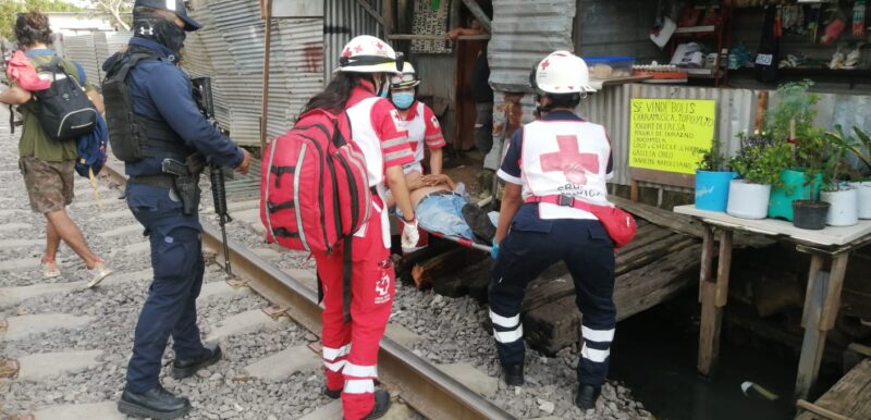 La locomotora alcanzó a arrollar al sujeto, de quien solo se dijo que es migrante y se encontraba reunido con otros centroamericanos, quienes lo ayudaron.