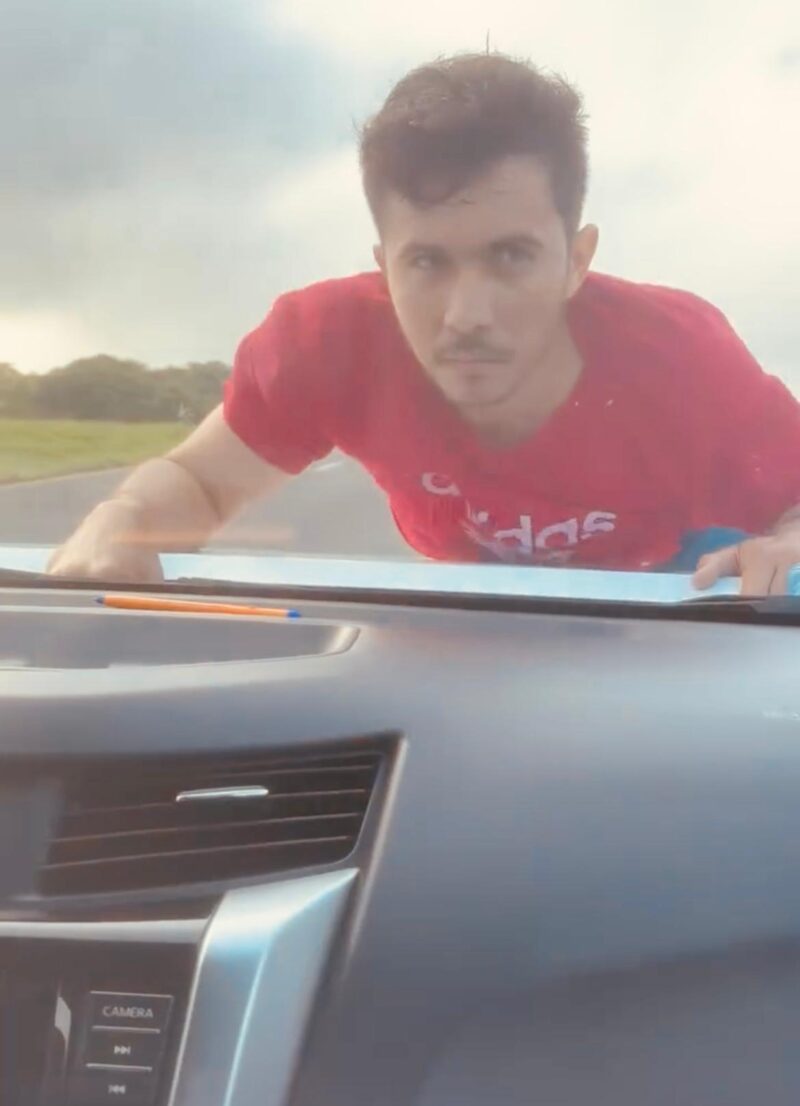 El material fue difundido por el usuario Humberto López, quien relató que el sujeto intentó abordarlo en plena marcha con intenciones sospechosas, por lo que optó por no detenerse. En el video se observa cómo el hombre permanece varios metros sujetado al cofre del automóvil, mientras el conductor continúa su trayecto para poner distancia con el presunto agresor.