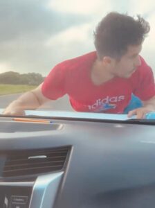 A través de redes sociales comenzó a circular un video captado por un automovilista que muestra el momento en que un presunto ladrón de carreteras queda colgado en el cofre de un vehículo en movimiento, en un aparente intento frustrado de asalto sobre la autopista La Tinaja–Cosoleacaque, a la altura del tramo Isla–Acayucan.