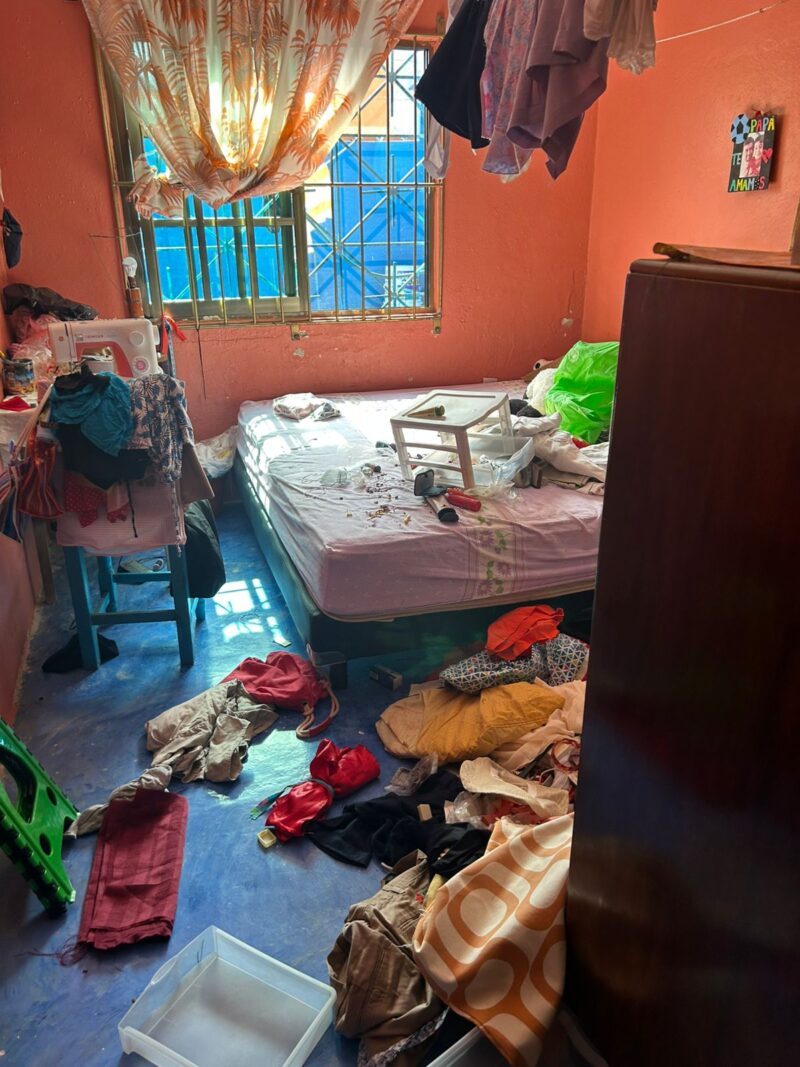 El robo fue descubierto la tarde de este lunes, cuando una pareja de adultos mayores regresó de un viaje y encontró la puerta principal destrozada y sus pertenencias esparcidas por toda la casa.