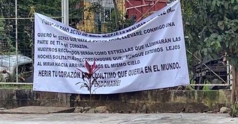 El primer reporte se registró en el bulevar Miguel Alemán, donde habitantes notaron una lona blanca colgada en una propiedad abandonada. Tras alertar al número de emergencias, elementos policiacos arribaron al sitio, pero al revisar el contenido confirmaron que no se trataba de un mensaje del crimen organizado, sino de una carta de arrepentimiento supuestamente escrita por un hombre dirigido a una mujer.