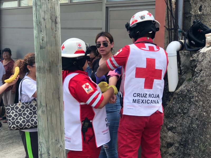 Tras el fuerte impacto, la conductora del automóvil sufrió crisis de nervios y fue atendida en el lugar por personal de la Cruz Roja.