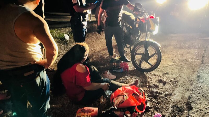 Lo anterior se registró la noche de ayer jueves en la zona conocida como «El Tomito», sitio a dónde arribaron paramédicos de Protección Civil Cosoleacaque para atender a Esmeralda Rosas, conductora de la motocicleta y al transeúnte Juan Torres, resultando ambos con golpes.