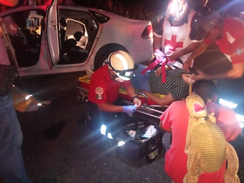 La fémina se encontraba prensada en la parte delantera de la unidad, ya que por el impacto la parte frontal quedó completamente desbaratada y se procedió a hacer extracción, presentando una posible fractura en pierna izquierda a la altura de fémur y policontundido.
