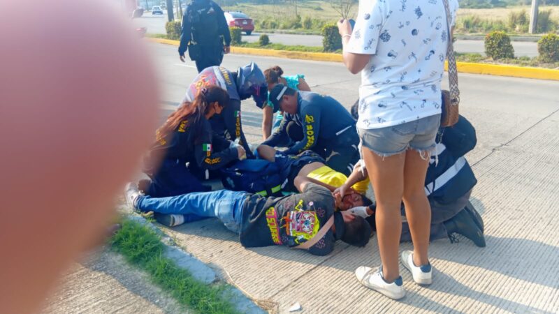Los jóvenes quienes resultaron con probables fracturas en las piernas, viajaban a bordo de una motocicleta marca Pistón de 400 centímetros, sin placas, misma que termino partida a la mitad.