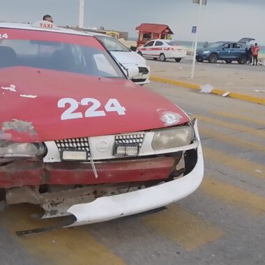 Chocó contra un automóvil marca Hyundai, tipo Grand i10, habilitado como taxi de este puerto, marcado con el número económico 6442, con placas A-369-XEY del servicio de transporte público local.