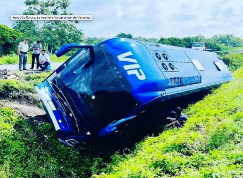 Por segunda ocasión, autobus de la linea KOLORS, se vuelca en la pista de Cosoleacaque