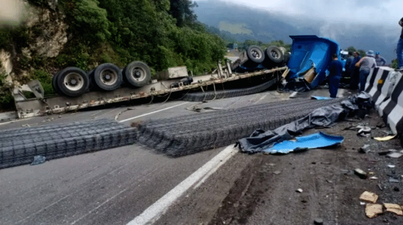 Pérdidas materiales y el cierre total de la circulación vehicular de la Autopista 150D Puebla- Orizaba, así como una inmediata movilización de rapiñeros, fue el saldo que dejó la volcadura de un tráiler qué remolcaba dos planas con mallas metálicas para construcción a la altura de las Cumbres de Maltrata.