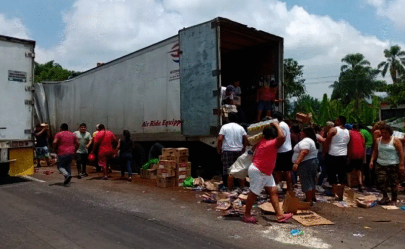 Cabe señalar que, cientos de rapiñeros reventaron los cinturones de seguridad de la caja tipo seca, la abrieron y la vaciaron completamente sin que nadie les dijera algo, a pesar de que en el lugar se encontraban oficiales de la Policía Municipal de Ixtaczoquitlán y de la Secretaría de Seguridad Pública del Estado, como se la Guardia Nacional división carreteras.
