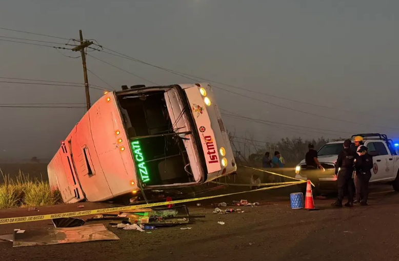 Los hechos ocurrieron cuando el autobús con número económico 2102 y placas de circulación 661HR8 se dirigía de Veracruz a Coatzacoalcos, cuando la unidad presuntamente perdió el control por una falla mecánica y volcó.