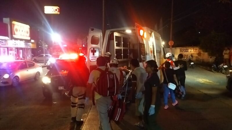Asimismo se dio a conocer que la dama se encontraba en aparente estado etílico y resultó con estado de salud delicado, al sufrir probable fractura en las costillas, mientras que el motociclista solo sufrió una herida en un brazo y su estado de salud estable.