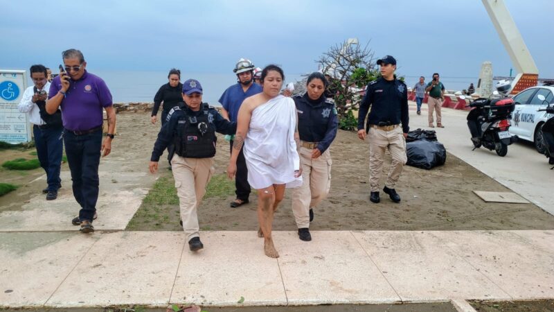 Una mujer con posible padecimientos mentales, fue reportada ante las autoridades, cuando se bañaba sin ropa en el mar, a la altura de Las Escolletas.