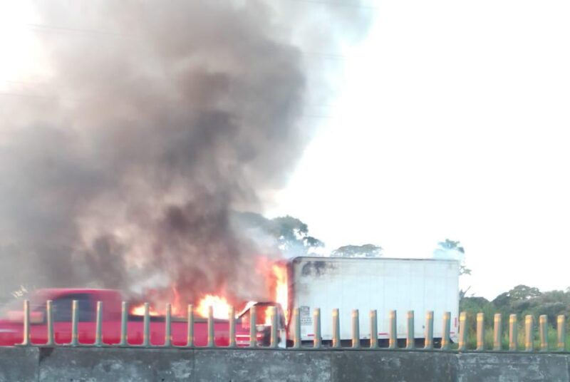 Cuantiosos daños materiales, dejó como saldo el incendio que sufrió un camión de carga que transitaba sobre la autopista Nievo Teapa-Cosoleacaque, por un posible cortocircuito en su sistema eléctrico, por fortuna el operador salió ileso.