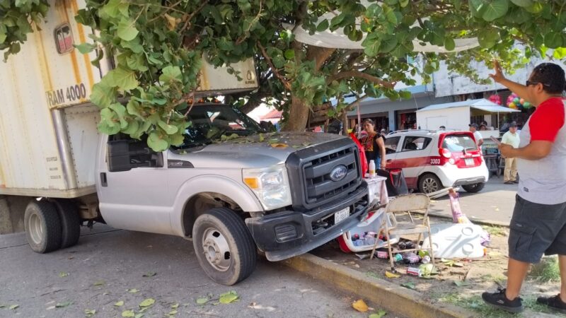 El percance ocurrió cuando dicha unidad transitaba de oriente a poniente sobre Juárez, pero al llegar a ese sector, debido a la altura, la caja chocó contra el árbol y le rompió un brazo y terminó sobre el camellón, donde casi arrolla a una vendedora de refrescos.