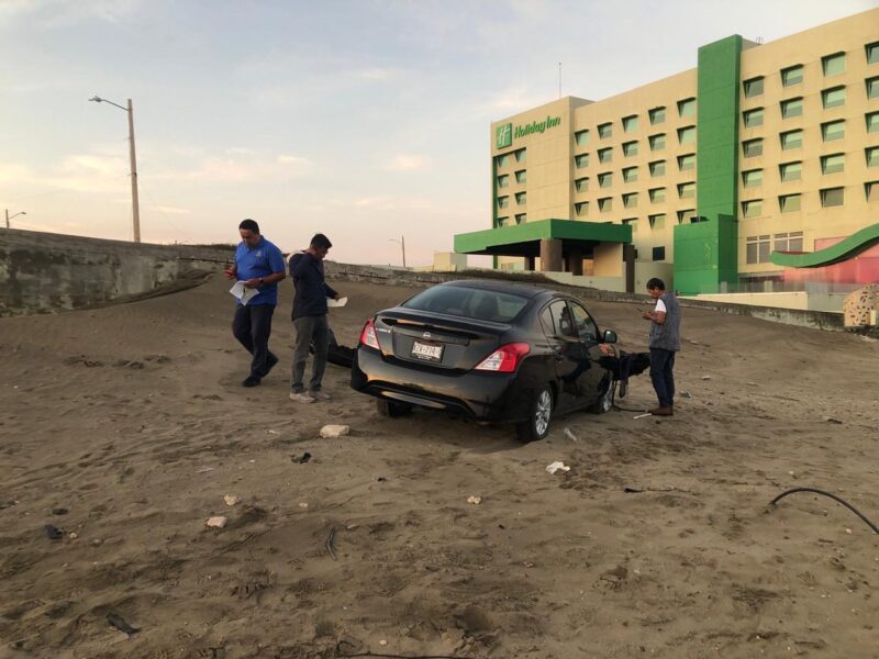Se metió a la playa con todo y carro