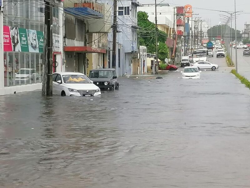 Más de una decena de automóviles quedaron varados, por las inundaciones a consecuencia de las fuertes lluvias que se registraron la mañana y tarde de este lunes en Coatzacoalcos.