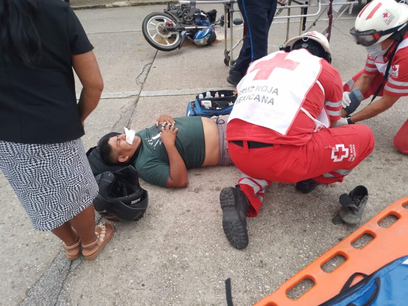 Un masculino con probable fractura de la pierna derecha y otro más con golpes, así como daños materiales por casi 40 mil pesos, fue el saldo de un percance vial, que se registró la tarde de este miércoles en calles de ma colonia Manuel Ávila Camacho de Coatzacoalcos.