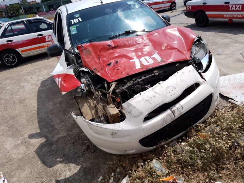 El distraido taxista de Nachital, Marcos Antonio Sierra de Jesús, vino a Coatzacoalcos a provocar un accidente que dejó cuatro damas lesionadas, dos menores con golpes y cuantiosas perdidas materiaes.