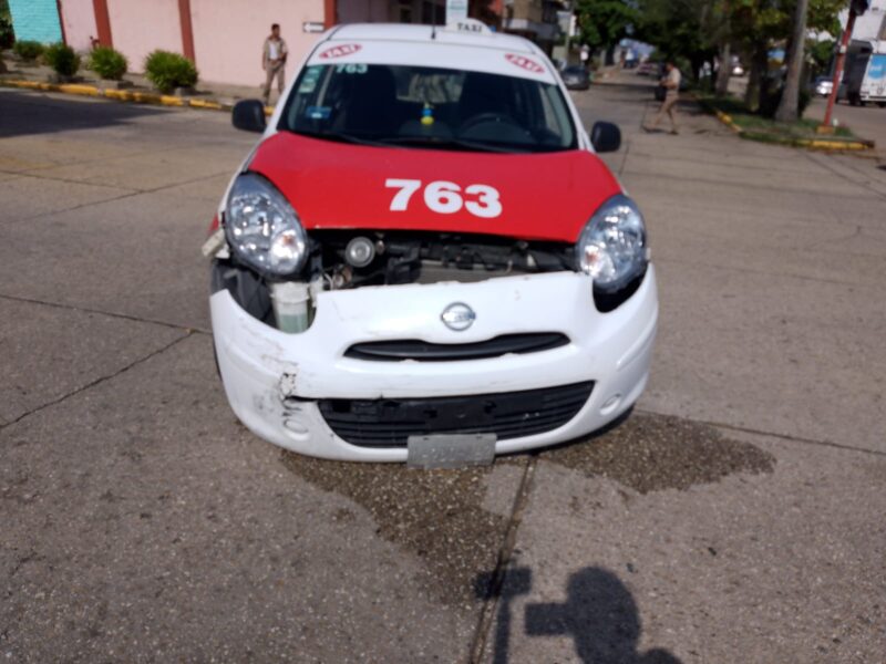 Que chocó contra un automóvil marca Nissan, tipo March, habilitado como taxi, con número económico 763, con placas A-690-XFS del servicio de transporte público local.