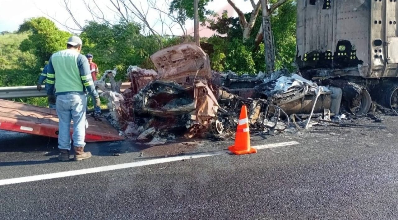 Un trágico accidente carretero se registró la madrugada de este sábado sobre la carretera federal 180, a la altura del kilómetro 31, frente al restaurante Maya, donde un tráiler con jaula ganadera embistió a un vehículo particular tipo Jetta.
