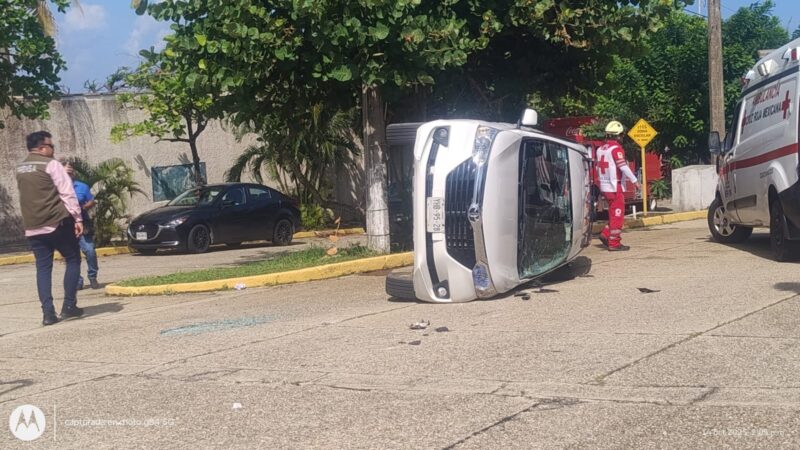 Dos lesionados y pérdidas materiañes por mas de 250 mil pesos, fue el saldo de una aparatoso colisión y volcadura de una de las unidades, en calles del centro de la ciudad.