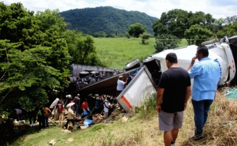 El percance se suscitó en el cuerpo de incorporación del kilómetro 300 de la vía rápida 2100 México- Veracruz, la cual comunica con la Carretera Federal 150 Córdoba- La Tinaja, cuando el operador del tráiler, que jalaba dos cajas cargadas con más de 20 toneladas de cerveza en diferentes presentaciones, perdiera el alineamiento del camino, se saliera de la carpeta de rodamiento y volcara a un costado del Trébol antes señalado.