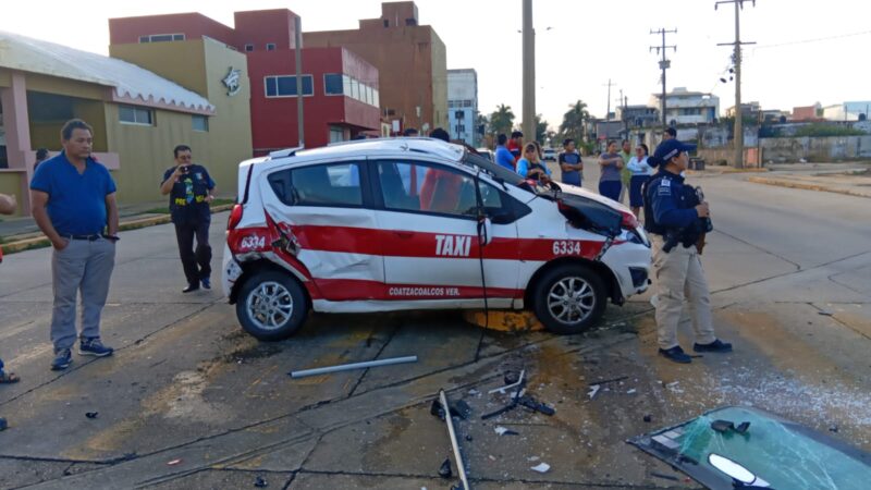 Cinco lesionados,.entre ellos dos estudiantes del centro educativo Ignacio Zaragoza, una menor y dos adultos, asi como cuantiosos daños materiales, fue el saldo de aparatoso accidente entre una unidad particular y un taxi, en el centro de Coatzacoalcos.