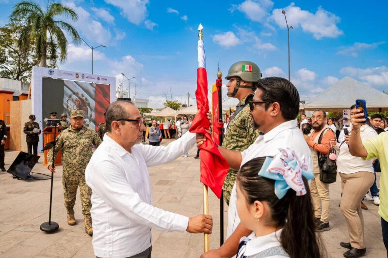 El maestro Guillermo Reyes Espronceda, Presidente Municipal de Minatitlán, participó en la “Ceremonia de Abanderamiento de Escuelas del Sistema de Educación Pública” desde el Parque Reforma en el marco de la conmemoración del Día de la Bandera.